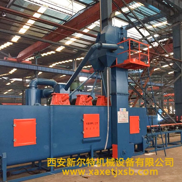 陕西钢管抛丸清理机是一种组合清理钢管内外壁的清理机,通过抛丸来清理钢管的外表面,通过抛喷丸清理内表面,使表面的氧化皮均祛除掉。钢管抛丸清理机主要利用高效强力抛丸器抛出的高速丸流,抛打位于室体内的旋转工件表面与内腔上,去掉其它的粘砂、锈层、焊渣、氧化皮及其杂物,使之获得精细的光洁表面。提高了漆膜与钢材表面的附着力,并提高钢材的抗疲劳强度和抗腐蚀能力,改善了钢材的内在质量,延长其使用寿命。